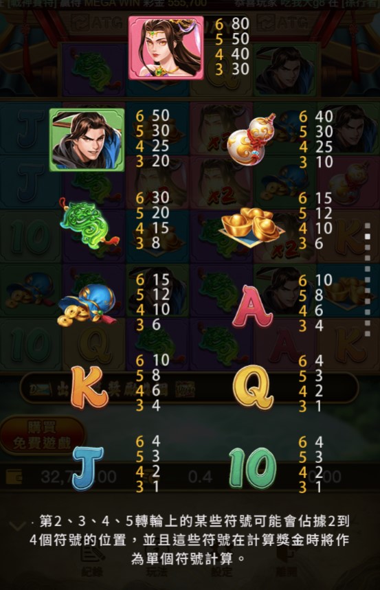 下面是幾個主要高分符號的賠率表,心裡有個底,看到它們出現時,你才知道該不該興奮!